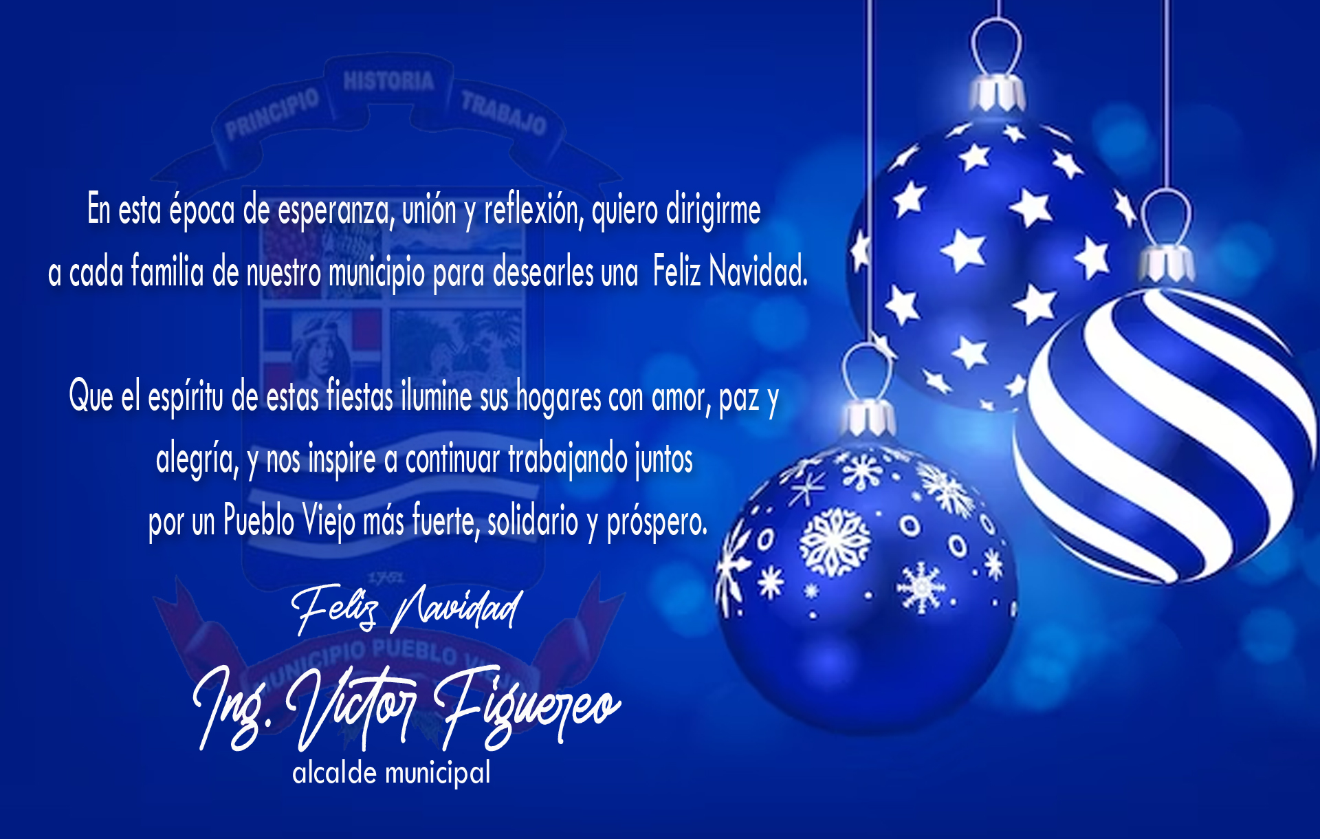 En esta época de esperanza, unión y reflexión, quiero dirigirme a cada familia de nuestro municipio para desearles una Feliz Navidad. Que el espíritu de estas fiestas ilumine sus hogares con amor, paz y alegría, y nos inspire a continuar trabajando juntos por un Pueblo Viejo más fuerte, solidario y próspero.
